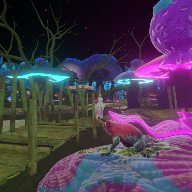 Enchanted Swamp environment was designed for personal skill-enhancement. The objective was to test a variety of Blender modifiers and Unity's particle effects. It showcases a serpentine pathway meandering through the swamp, animated frogs, and luminous shaders. The incorporation of diverse textures enriches the visual complexity of the setting. Particle effects such as glowing dust, stars, and bubbles add to the mystical atmosphere. To augment the immersive experience, I integrated sound effects and employed the Blockade Labs engine for generating the background.