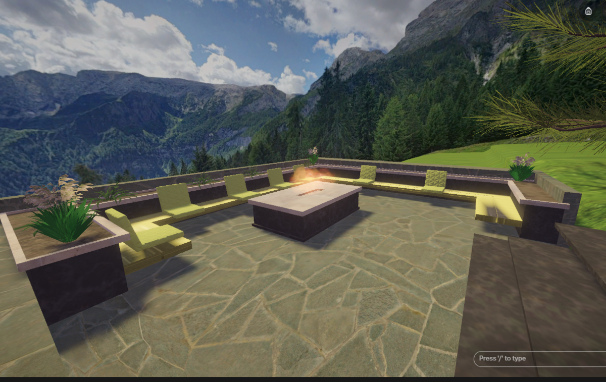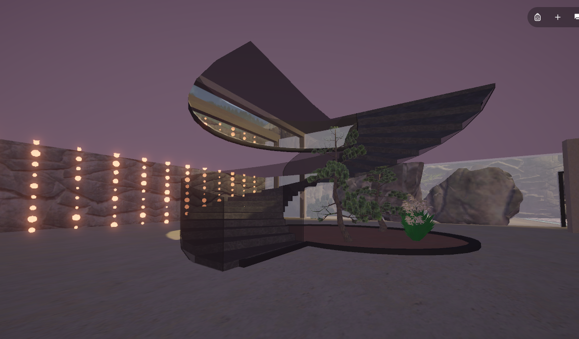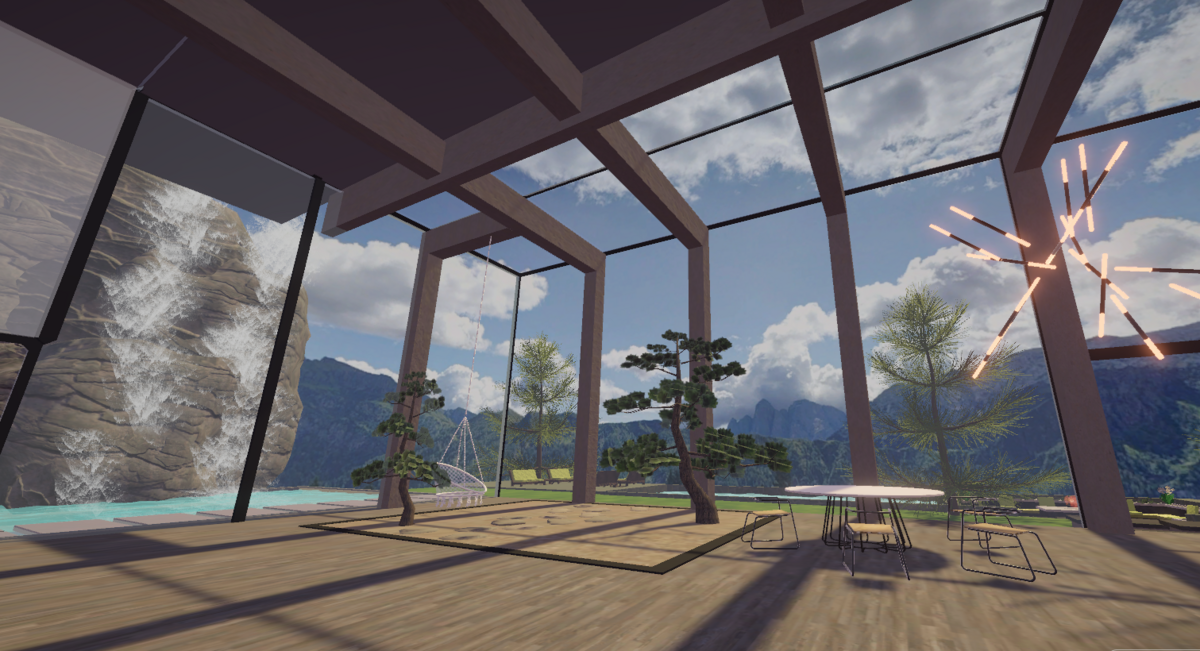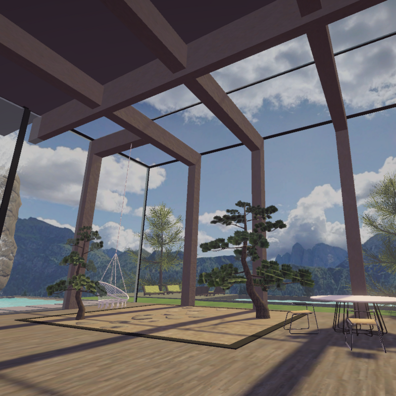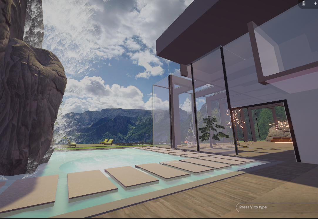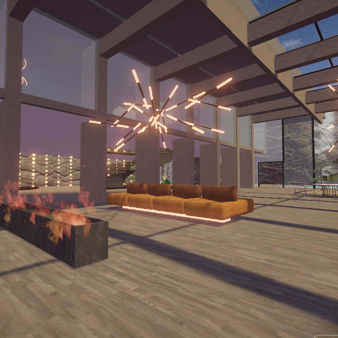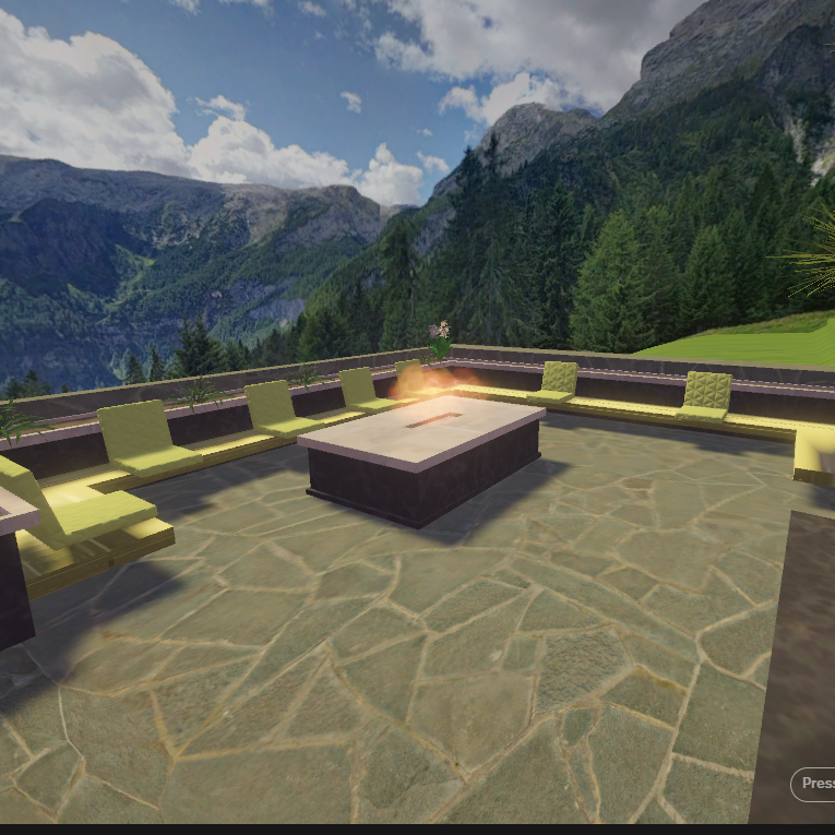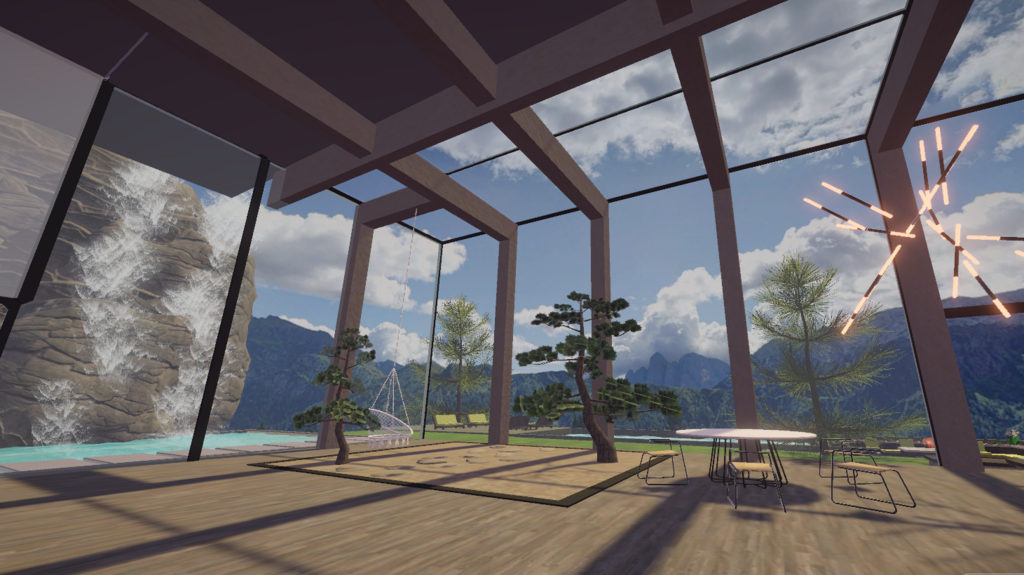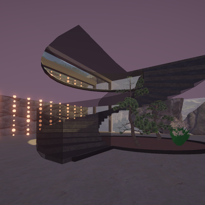 Inspired by Stephen Tsymbaliuk's 'Italy House' rendering, this environment showcases a villa perched on a cliff in the Italian Dolomites. This two-story villa features winding stairs and an outdoor terrace, which includes a waterfall created using Unity's particle system. Additionally, there's a pool with realistically rendered water, created using Unity's shader graph, and a cozy fire pit surrounded by the sitting area. The entire environment was meticulously designed in Blender.