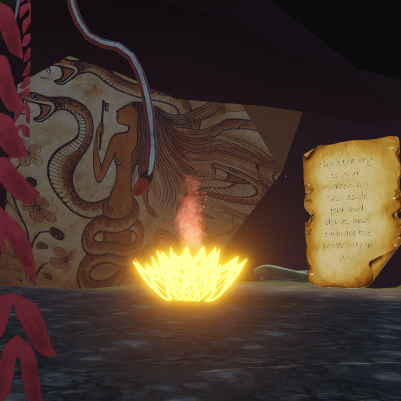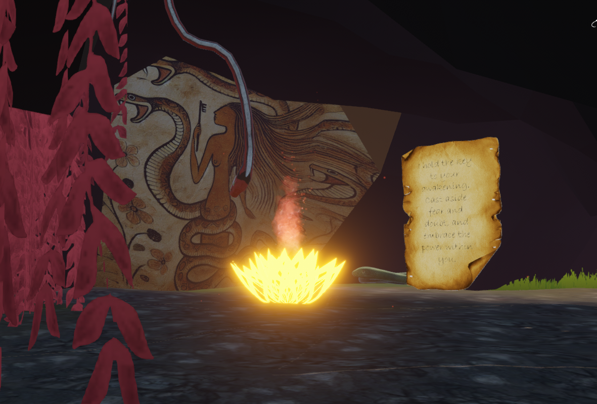 A balance of beauty and danger, where the flowers glow but the serpents lurk. Glowing flowers light the path, but serpents coil in the shadows, ever watchful. At the cave of this garden stands the goddess, keeper of the keys to awakening. She offers the key to those brave enough to embrace both the peril and the power that lie within.