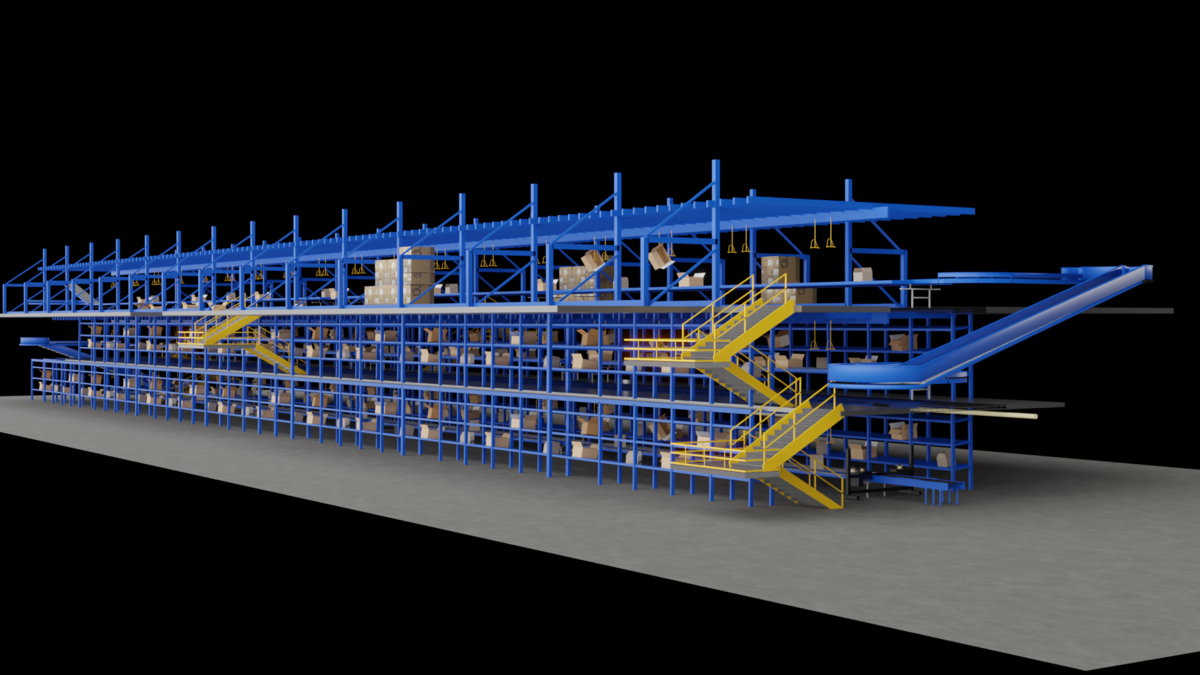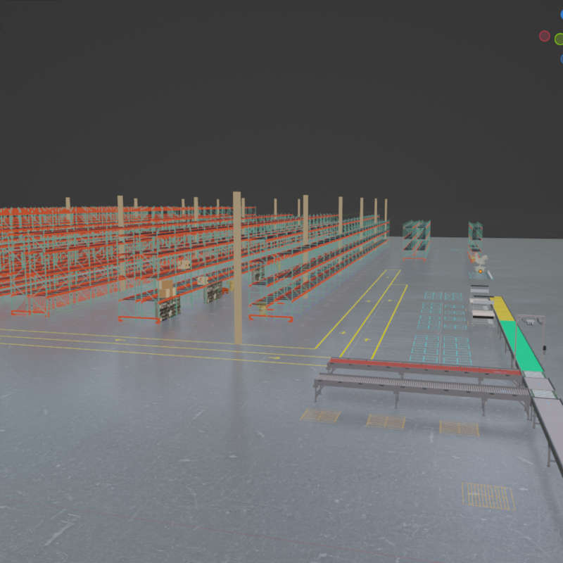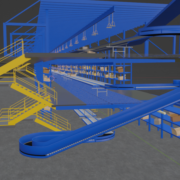 This environment was developed for an industrial client specializing in conveyor belt software. The project involved optimizing the existing environment, reducing its size, enhancing it with textures, modeling the shelves, and designing additional hard surface objects.